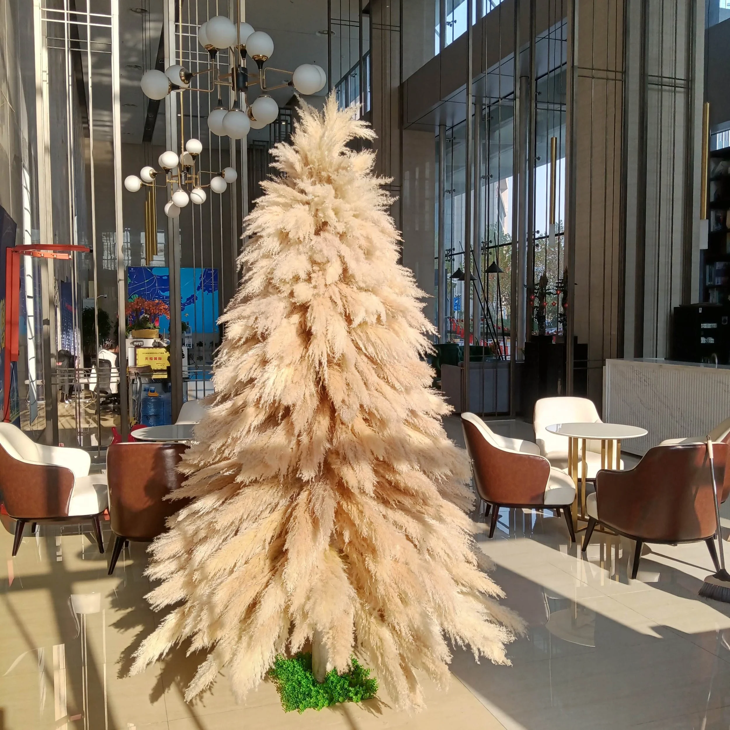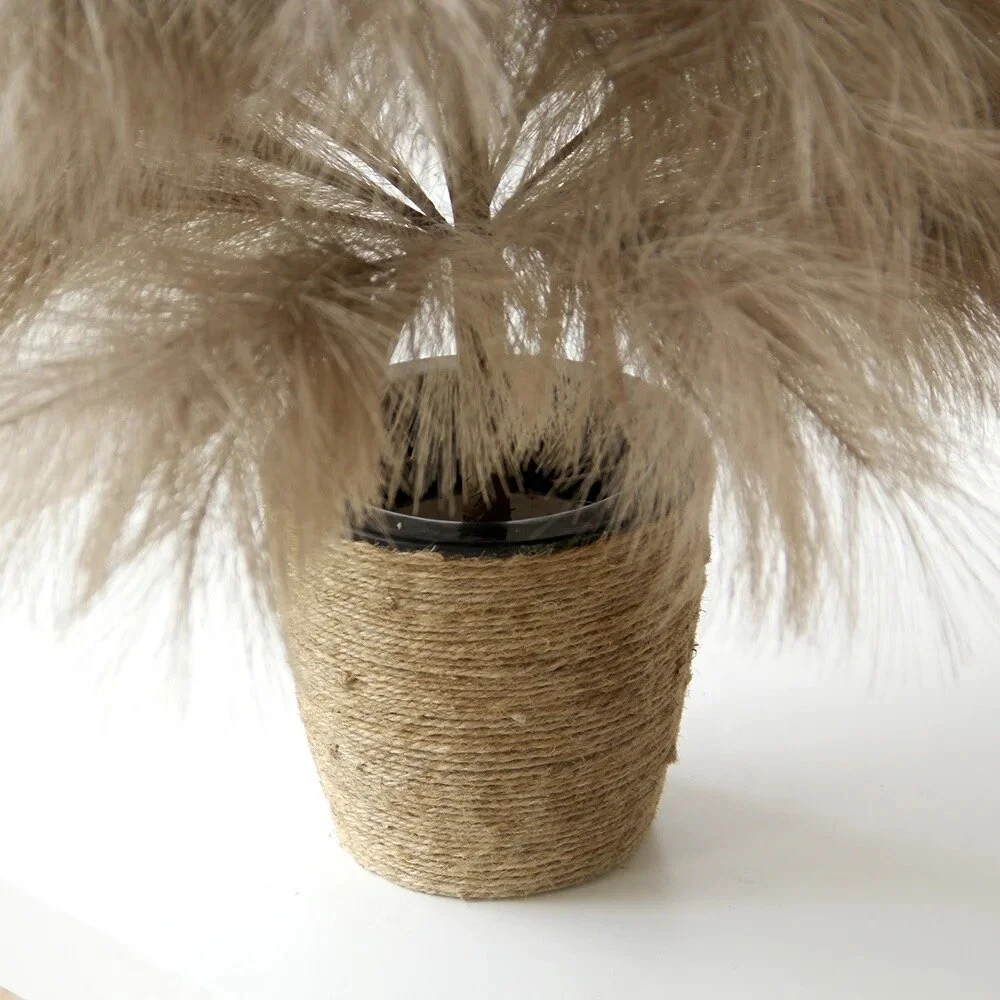Our pampas stems are authentically preserved with plastic wrapping to maintain their natural fluffiness during delivery. These stems are real and treated with care. The trunk is constructed from genuine materials, and the balance plate is a robust, 100% iron component. Assemble the pampas tree with attention to detail, and store it correctly to extend its lifespan.
